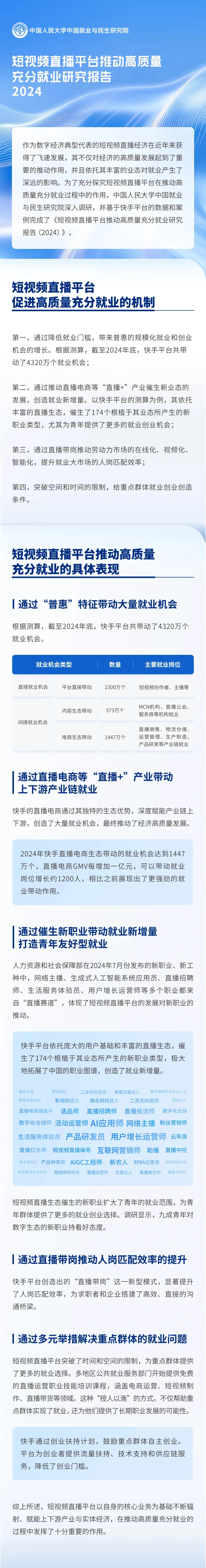 中國人民大學(xué)報告:快手帶動4320萬個就業(yè)機(jī)會
